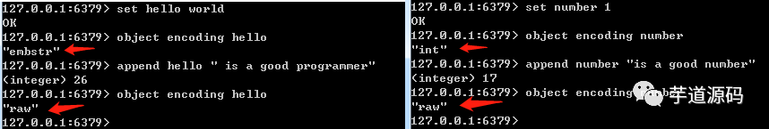 int编码字符串对象和embstr编码字符串对象在一定条件下会转化为raw编码字符串对象。embstr:<=39字节的字符串。int:8个字节的长整型。raw:大于39个字节的字符串。
