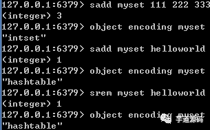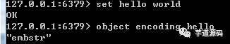 前面说过,Redis每个对象由一个redisObject结构表示,它的ptr指针指向底层实现的数据结构,而数据结构由encoding属性决定。比如我们执行以下命令得到存储“hello”对应的编码: