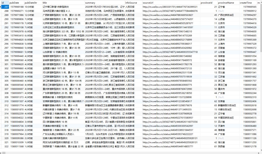 新型肺炎疫情数据爬虫+数据持久化