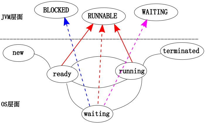 Thread.State.WAITING 状态与传统的 waiting 状态类似: