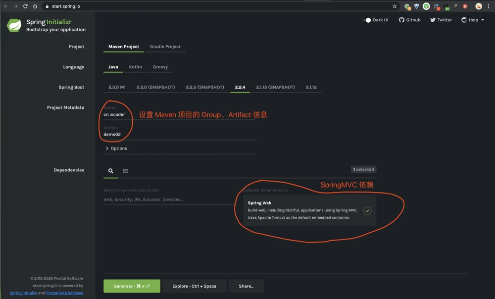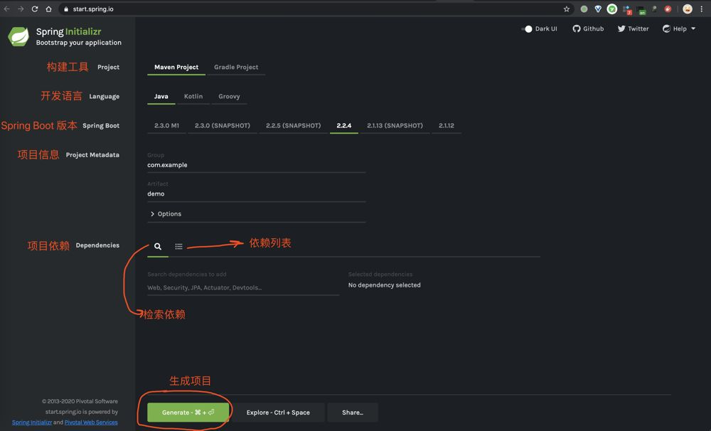 ① 使用浏览器,打开 https://start.spring.io/ 地址,配置如下图所示: