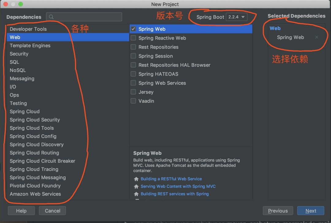 ③ 点击「Next」按钮,选择需要的依赖,这里暂时我们只需要 Web 依赖。如下图所示: