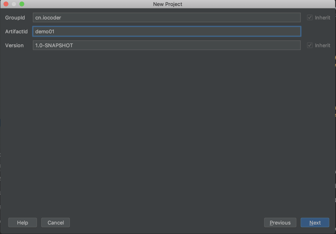 ② 选择 Maven 类型,点击「Next」按钮,进入下一步。输入 Maven 的 GroupId、ArtifactId,如下图所示: