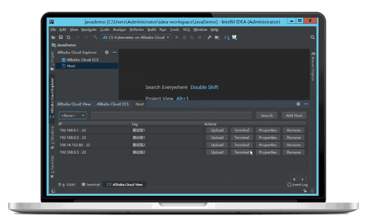 本地 IDE 插 Cloud Toolkit ,帮助开发者更高效地开发、测试、诊断并部署应用。通过插件,可以将本地应用一键部署到任意服务器,甚至云端(ECS、EDAS、Kubernetes 和 小程序云 等);并且还内置了 Arthas 诊断、Dubbo 工具、Terminal 终端、文件上传和 MySQL 执行器等工具。截止目前已经有 18 万开发者下载了 Cloud Toolkit ,体验了一键部署带来的开发便利。