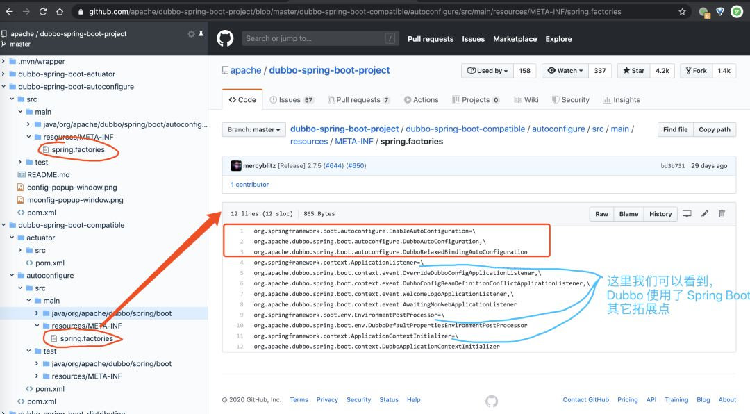spring.factories理解成 Spring Boot 自己的 SPI 机制。感兴趣的胖友,可以看看如下的文章: