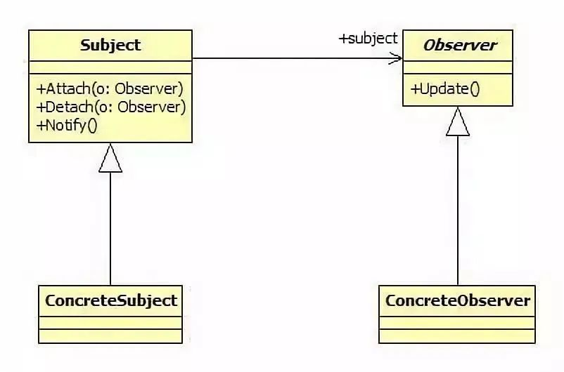 看不懂图的人端着小板凳到这里来,给你举个栗子:假设有三个人,小美(女,22),小王和小李。小美很漂亮,小王和小李是两个程序猿,时刻关注着小美的一举一动。有一天,小美说了一句:“谁来陪我打游戏啊。”这句话被小王和小李听到了,结果乐坏了,蹭蹭蹭,没一会儿,小王就冲到小美家门口了,在这里,小美是被观察者,小王和小李是观察者,被观察者发出一条信息,然后观察者们进行相应的处理,看代码: