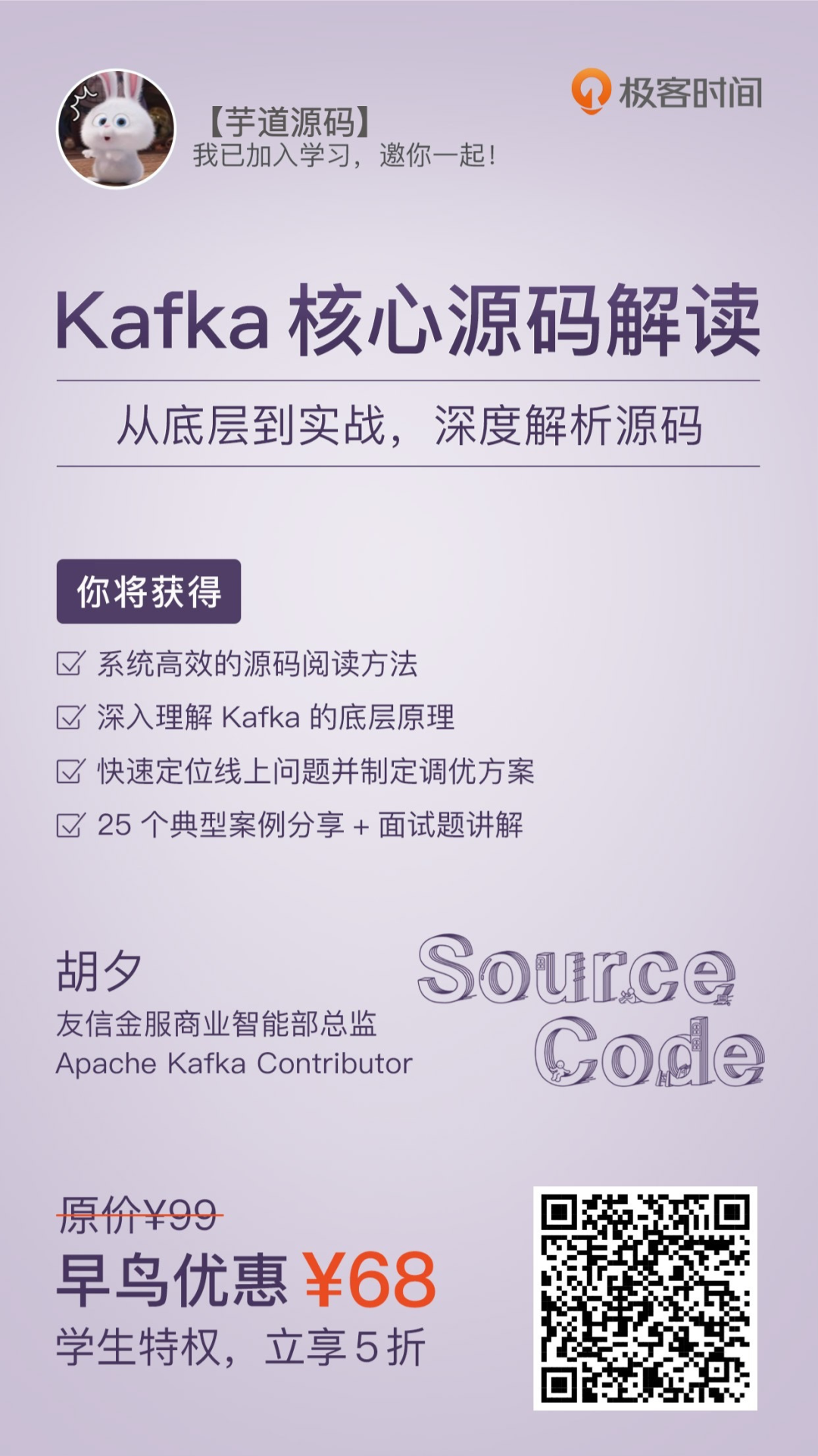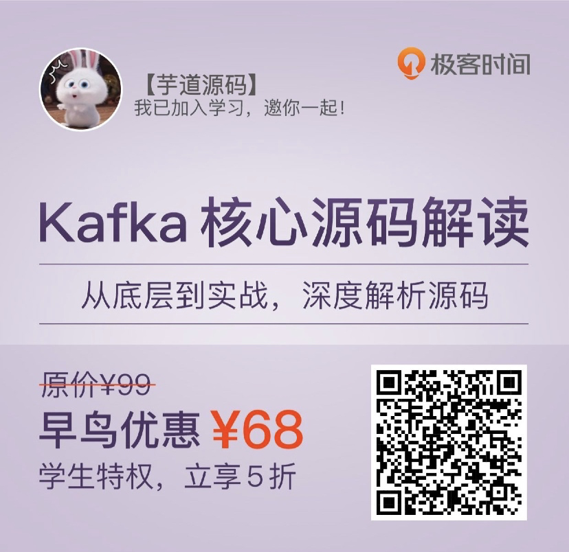 这张图出自胡夕,之前看过他的专栏《Kafka 核心技术与实战》,感觉收获很大。最近,得知他又推出了第二季《Kafka 核心源码解读》,看了专栏的目录和部分内容,很想推荐给你。