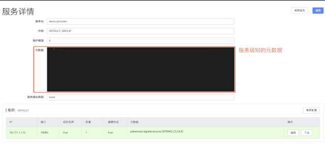 除此之外,Nacos Discovery 也将服务实例自身的一些元数据信息-例如 host,port, 健康检查URL,主页等内容注册到 Nacos。
