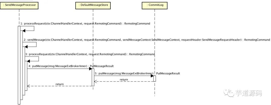 CommitLong进行存储,详细逻辑见:《RocketMQ 源码分析 —— Message 存储》
