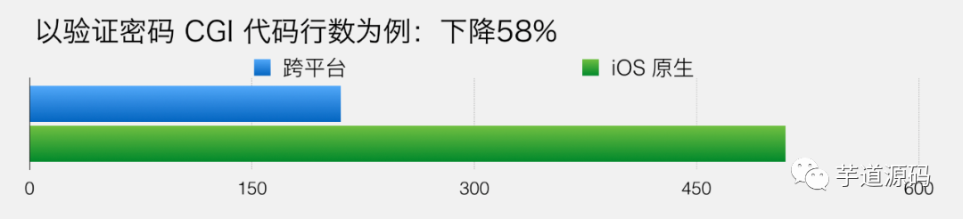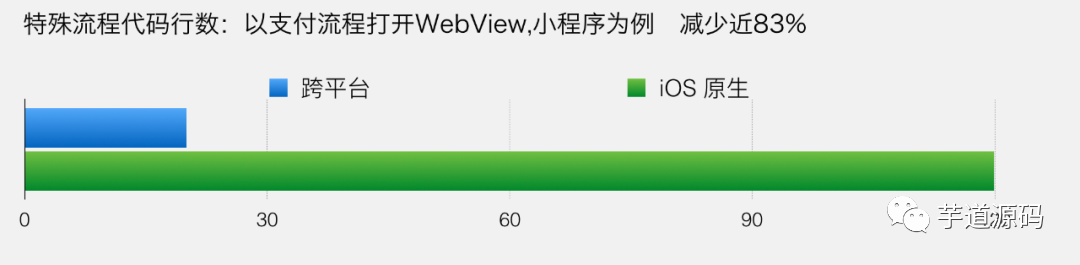 以核心支付流程代码为例,跨平台需要 3512 行,iOS 原生需要 6328 行。减少了近 45% 的代码。