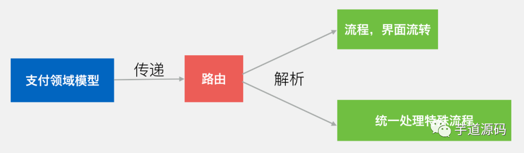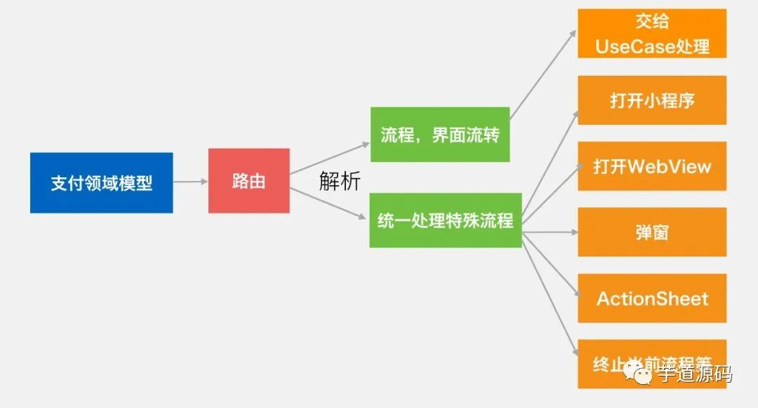 建立支付领域模型后,我们路由的解析就变得非常清晰了。路由解析之后,会根据路由类型,触发不同的动作。