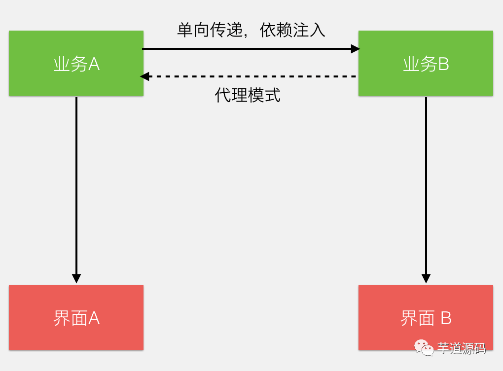 如果数据修改需要通知前序流程,使用代理模式通讯。