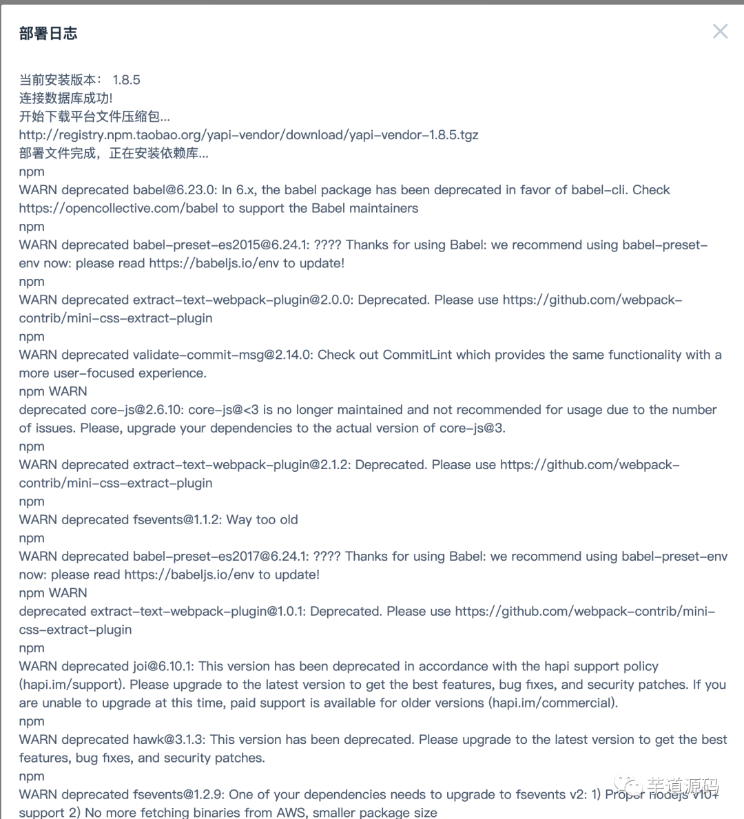 点击「开始部署」按钮,会弹出“部署日志”窗口。如下图: