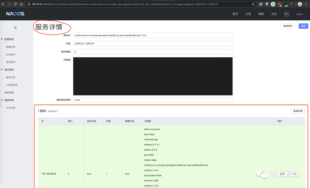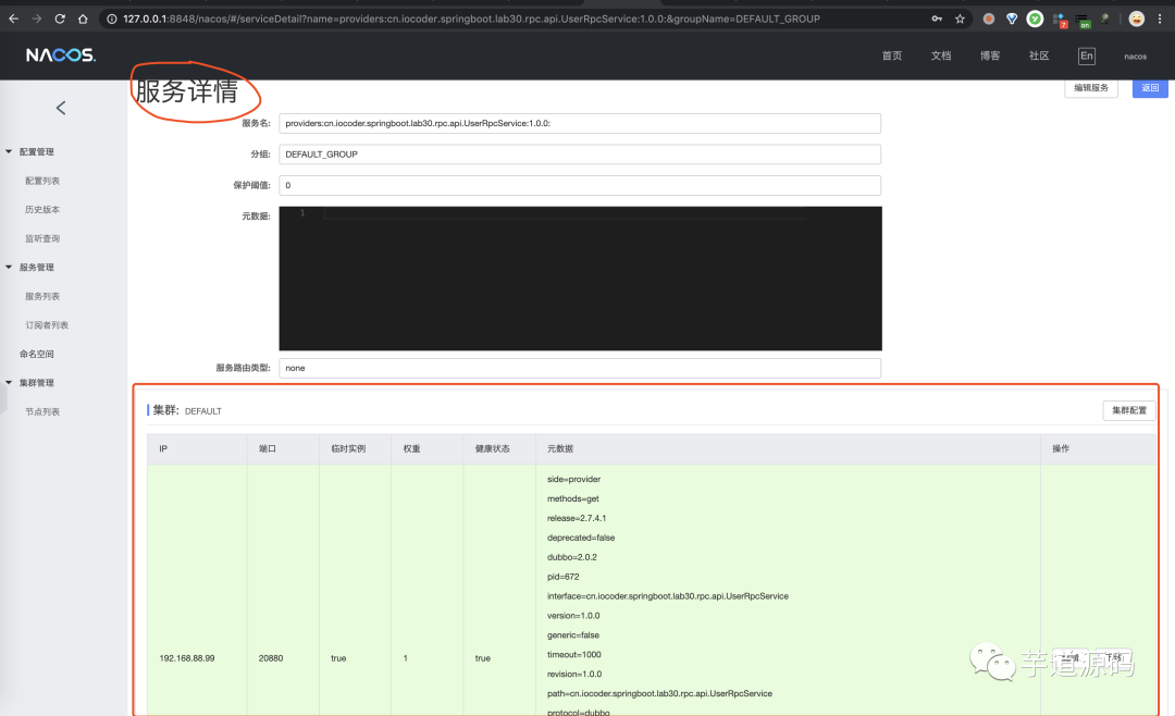 友情提示:艿艿本机搭建的 Nacos 服务启动在默认的 8848 端口。