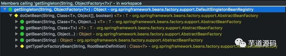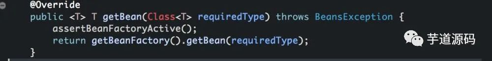 此时如果想查看getBean()方法如何实现,可能会让你失望。结果如下: