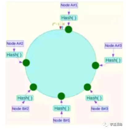 针对这一问题,可以引入虚拟节点解决。简单地说,就是为每一个服务器节点计算多个Hash,每个计算结果位置都放置一个此服务器节点,称为虚拟节点,可以在服务器IP或者主机名后放置一个编号实现。