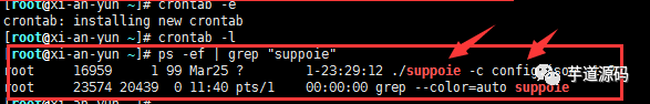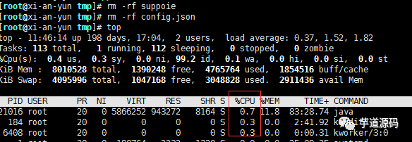 不管三七二十一先杀掉再说,因为它就是Tomcat等程序启动不了的元凶。然而并没有什么卵用,过一会再看那个东西又跑出来占cpu。怀疑是个定时任务:
