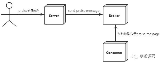 有一个点赞业务,不限制用户的点赞数只需进行记录(产品需求,开发提议无效),当每个用户都进行x连击享受数量猛增的快感时如果数据库都需要进行x个点赞数据的插入,数据库毫无疑问会塞死导致崩溃。于是想到可以尝试下MQ削峰,比如每秒来了5000消息但数据库只能承受2000,那我消费时每次只拉取消费1600就好了,剩下的放在Broker堆积慢慢消费就好。由于之前的消息中心也在用RocketMQ,于是确认使用RocketMQ来进行削峰。