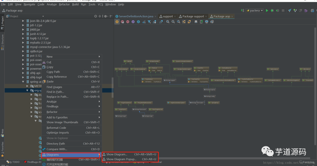 最近在开发的过程当中,对于已有的代码,想将相关类绘制成UML类图,虽然现在有很多UML类图的优秀软件,比如ProcessOn(可视化编辑)、draw.io(可视化编辑)、PlantUML(代码生成),其实看到这里我就想IDEA中有没有像PlantUML一样的自动生成的插件,本着怀疑的态度百度了一下,果然IDEA还是很强大的,这个插件都是自带的,接下稍微讲述如何利用IDEA生成UML类图的教程。