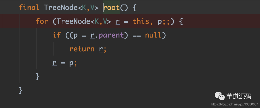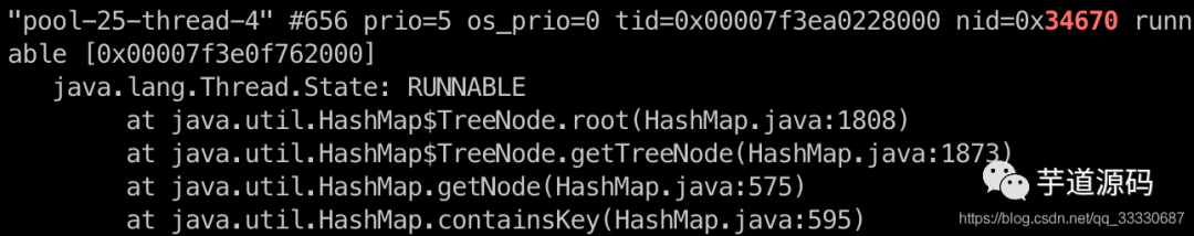 根据堆栈信息,root方法是问题所在,点开HashMap源码