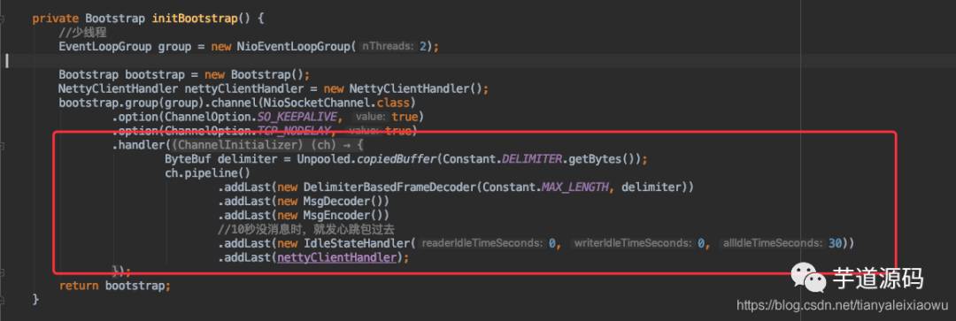 和Server端是一样的,也是这几个编解码器,没有区别。因为netty和server之间通讯,我都是用的同一个对象定义。