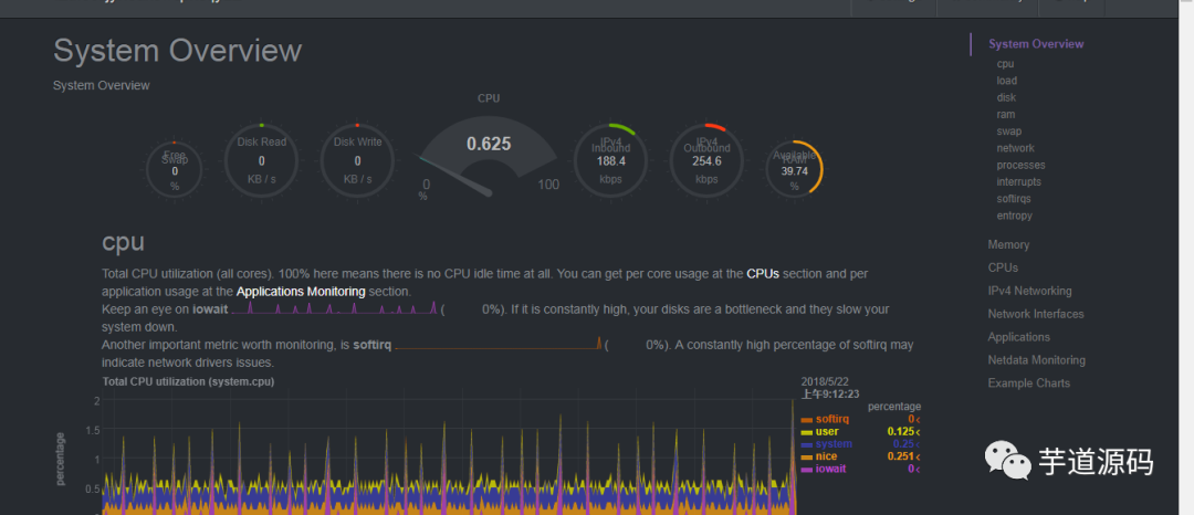 最终在各种系统对比的过程中,选择了netdata这个工具,当然有一些软件比如:zabbix,negios等等都是可以的,但是我们服务器压力不算大,最终采用了更加轻量级的解决方案。