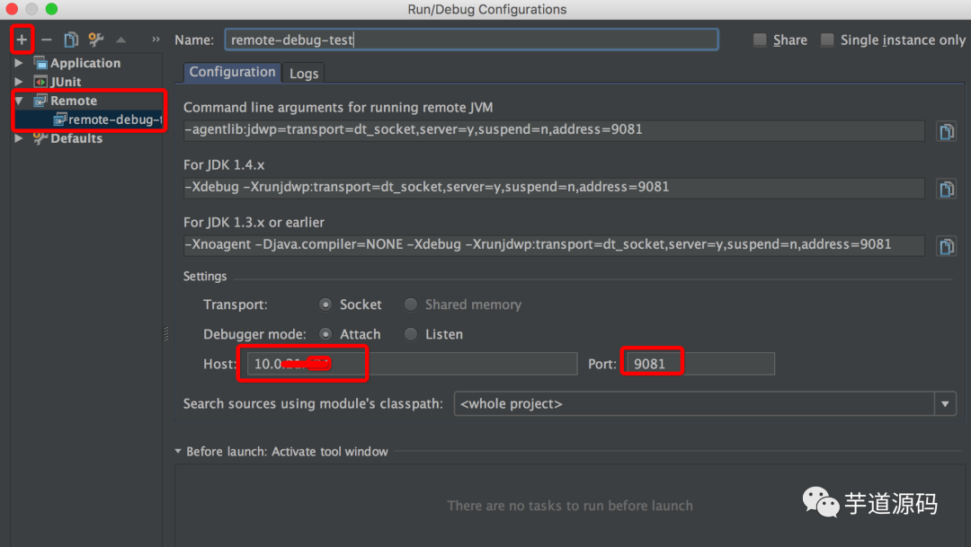 这也是一个装B的利器,本机不用启动项目,只要有源代码,可以在本机直接远程调试服务器上的代码,打开姿势如下: