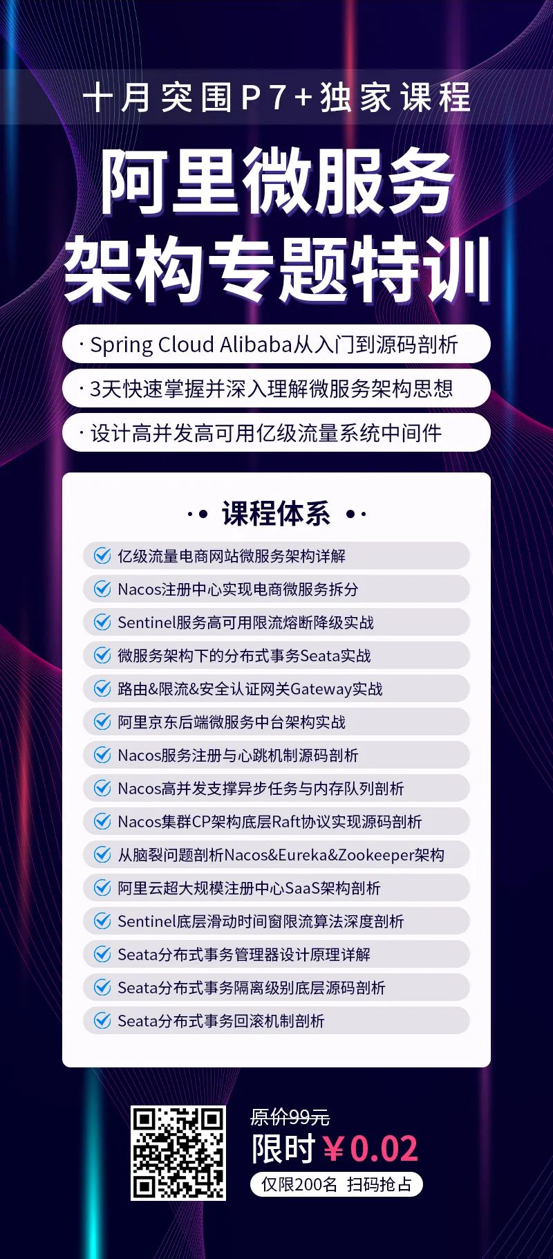 但如果你没办法完全答出这些问题,我建议你听听这三天的课,来提升一下自己的核心竞争力,这三节课就是《3天阿里微服务架构专题特训营》,从阿里微服务架构实战到源码级别深度讲解!