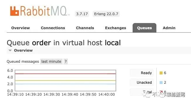 从RabbitMQ管控台也可以看到,刚刚发送的的3条消息处于ready状态。这个时候就如果一直有消息进入,都会堆积在队里里面无法被消费。