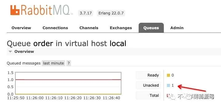 观察日志发下,虽然有报错,但是还能正常进行推送。但是RabbitMQ已经出现了一条unacked的消息。