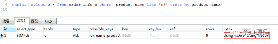 using filesort :表示 mysql 需额外的排序操作,不能通过索引顺序达到排序效果。一般有 using filesort都建议优化去掉,因为这样的查询 cpu 资源消耗大。