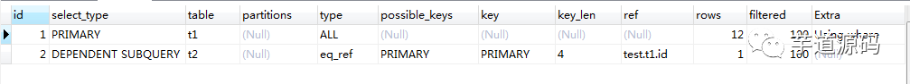 -- 此为 5.7 写法,如果是 5.6版本,需要用 explain extended ...