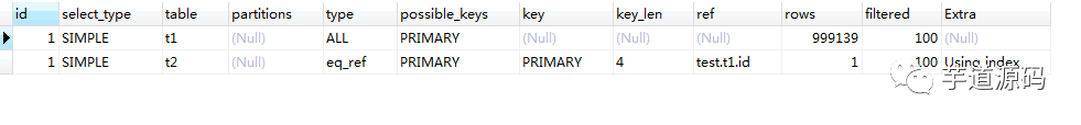 同样的,以 t2 大表为外表的查询情况,也查看优化后的语句。