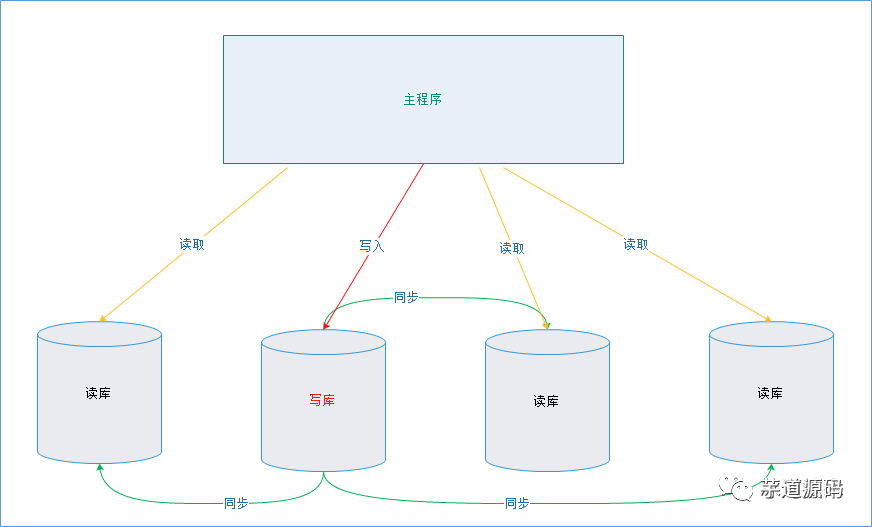 其中一个是主库,负责写入数据,我们称之为:写库;其它都是从库,负责读取数据,我们称之为:读库;