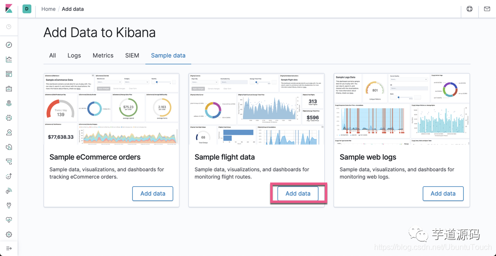 点击上面的Add data,这样我们就可以完成实验数据的导入了。在Elasticsearch中,我们会找到一个叫kibana_sample_data_flights 的索引。