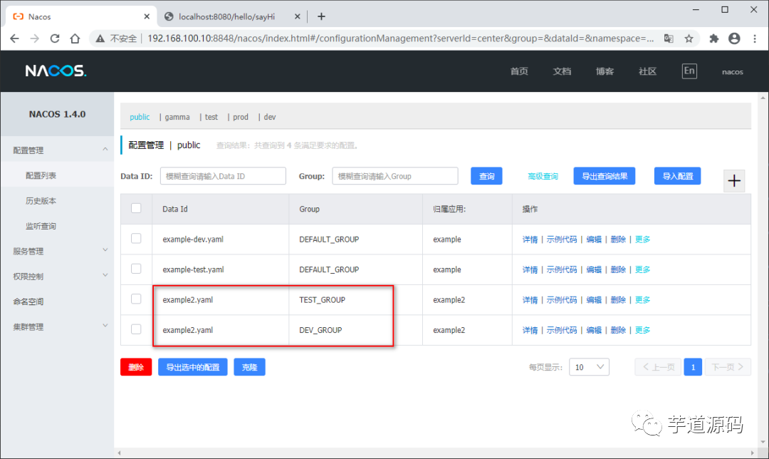 3、用配置集ID(Data ID)名称来区分不同的环境,命名空间和组用默认的即可,通过文件命名来区分;