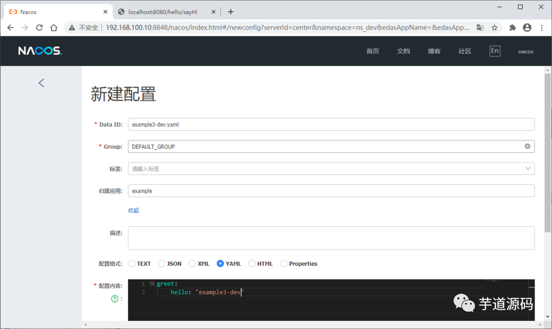 如果是这样的话,这个时候,Data ID 命名就应该是 example2-test.yaml