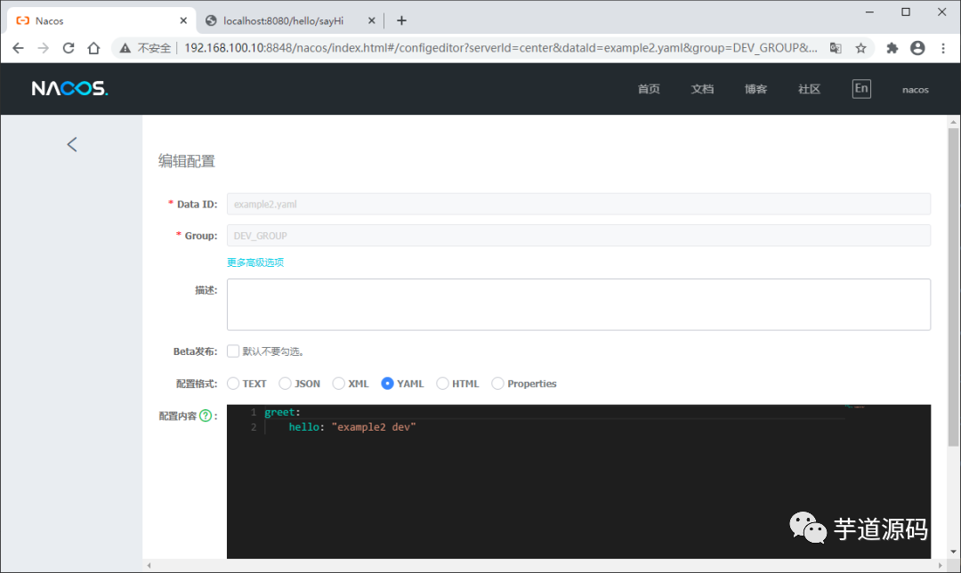 file-exetension 为配置内容的数据格式,可以通过配置项 spring.cloud.nacos.config.file-extension 来配置。目前只支持 properties 和 yaml 类型。