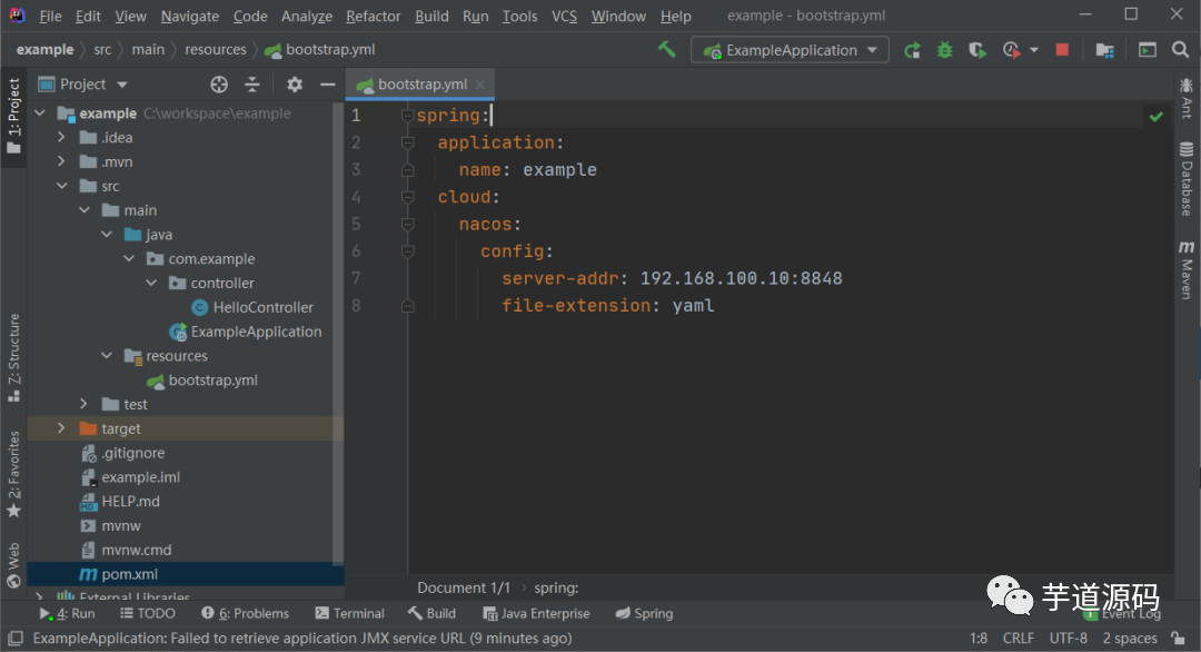 为了方便演示,这里建了一个名为example的Spring Boot项目