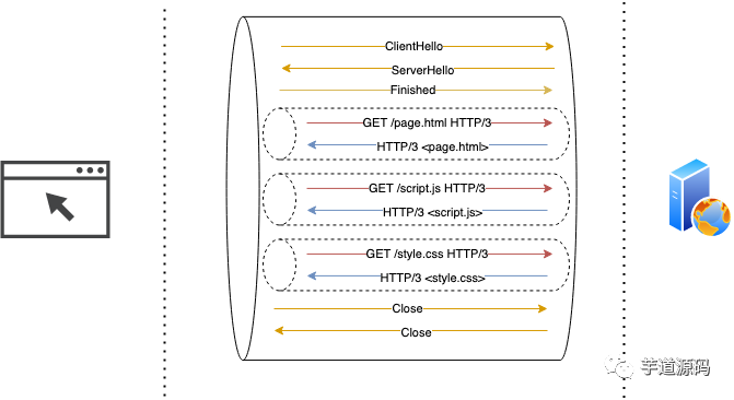 与 HTTP2 在技术上允许未加密的通信不同,QUIC 严格要求加密后才能建立连接。此外,加密不仅适用于 HTTP 负载,还适用于流经连接的所有数据,从而避免了一大堆安全问题。建立持久连接、协商加密协议,甚至发送第一批数据都被合并到 QUIC 中的单个请求 / 响应周期中,从而大大减少了连接等待时间。如果客户端具有本地缓存的密码参数,则可以通过简化的握手(0-RTT)重新建立与已知主机的连接。