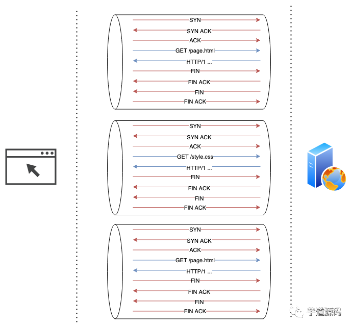下图说明了每建立一个新的 TCP 连接涉及多少请求开销。