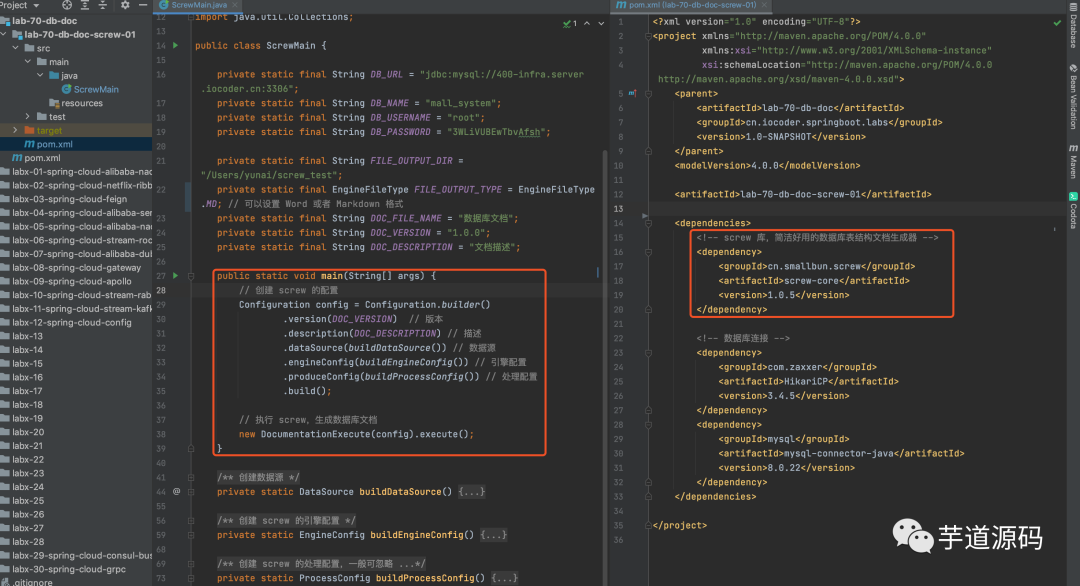创建 lab-70-db-doc-screw-01 示例项目,使用 screw 的 Java 代码 的方式,生成文档。