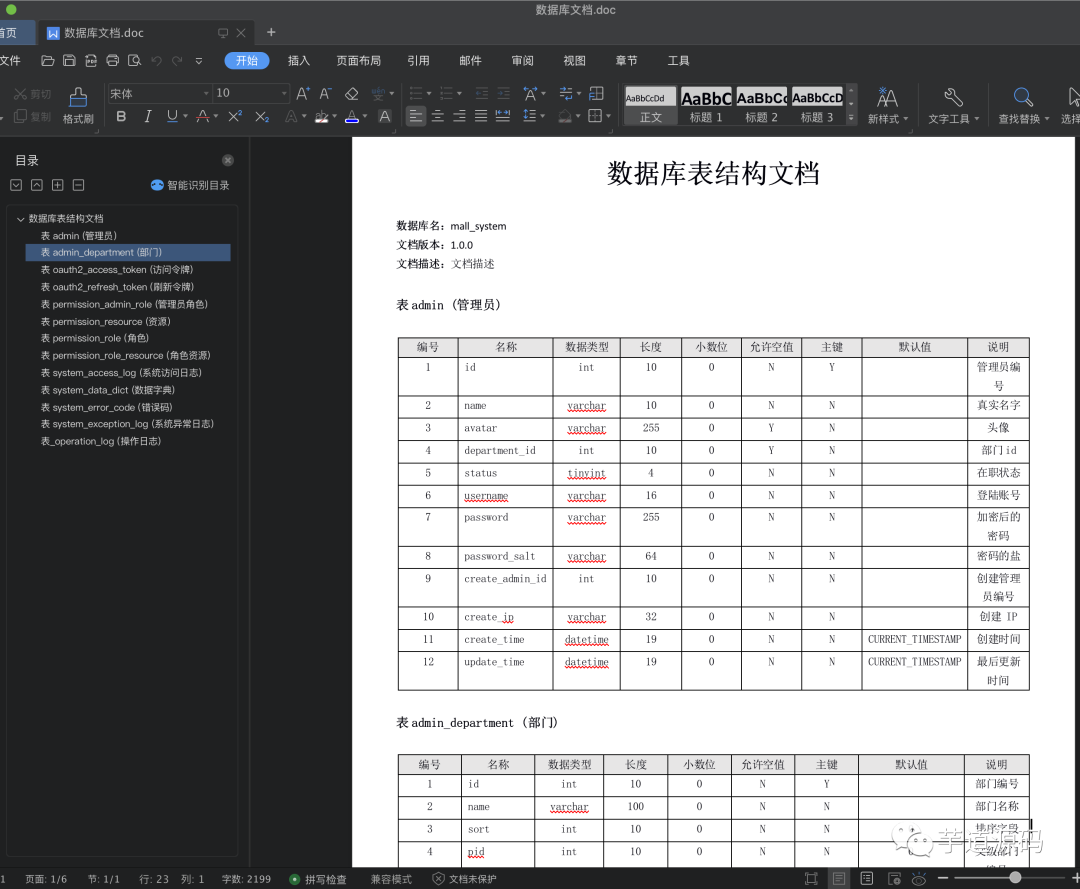 相信胖友们都手写 过数据库表结构文档 ,一通无脑的 CV 大法之后,小几十页的 Word 文档就出炉了。