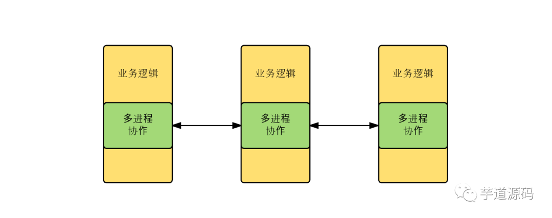 一个应用程序,涉及多个进程协作时,业务逻辑代码中混杂有大量复杂的进程协作逻辑。