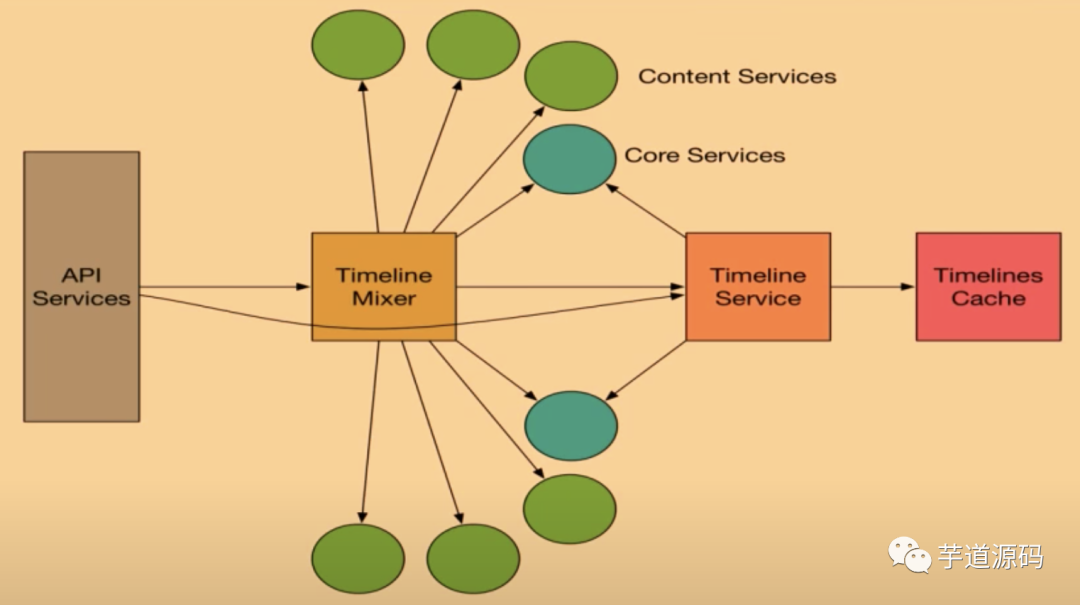 对于粉丝数不多的用户如果发Twitter使用的还是写扩散模型,由Timeline Mixer服务将用户的Timeline、大V的写Timeline跟系统推荐等内容整合起来,最后再由API Services返回给用户。