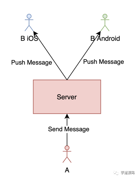 推模式:有新消息时服务器主动推给所有端(iOS、Android、PC等)