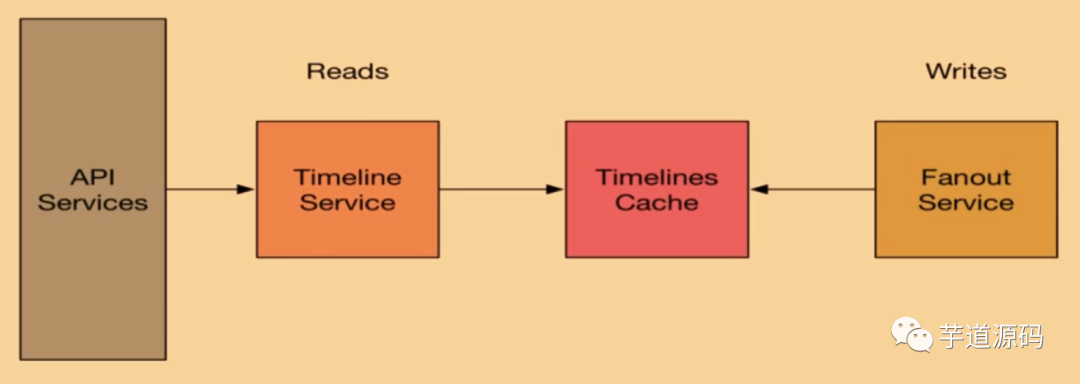 从这个视频分享《How We Learned to Stop Worrying and Love Fan-In at Twitter》可以看出,Twitter一开始使用的是写扩散模型,Fanout Service负责扩散写到Timelines Cache(使用了Redis),Timeline Service负责读取Timeline数据,然后由API Services返回给用户。