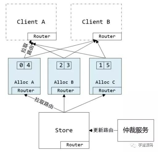 微信的序列号生成器由仲裁服务生成路由表(路由表保存了uid号段到AllocSvr的全映射),路由表会同步到AllocSvr跟Client。如果AllocSvr宕机的话会由仲裁服务重新调度uid号段到其它AllocSvr。