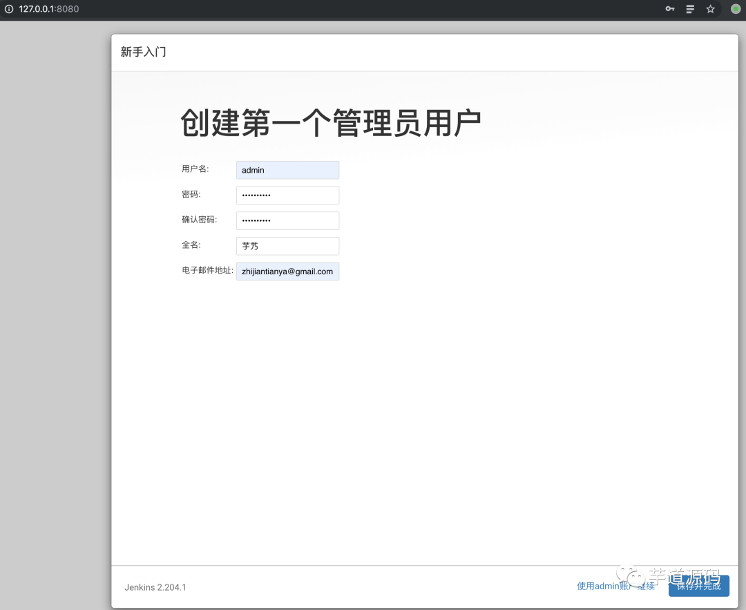 点击「保存并完成」按钮,完成管理员账号的创建。