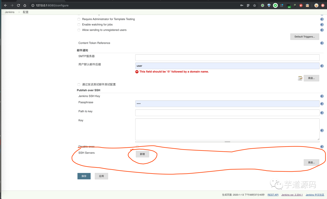 在「2.4 Jenkins 部署任务配置」的基础上,我们修改邮件配置。一共有两处配置项,我们逐个来看看哈。